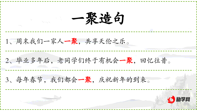1. 【一聚】 - 一个聚落; 一堆; 一次聚合。