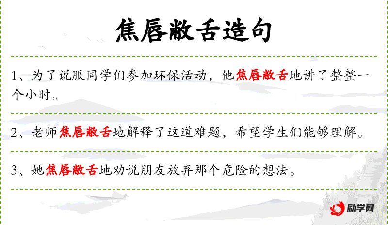 1. 【焦唇敝舌】 - 指费尽口舌。