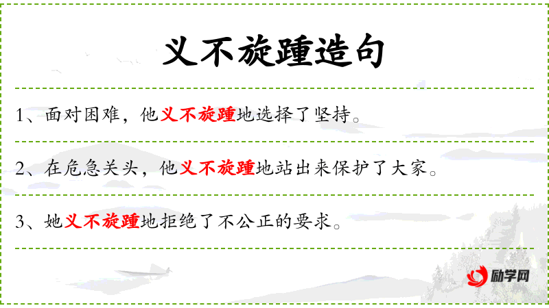 - 义不旋踵:成语,意思是毫不犹豫,立即行动。