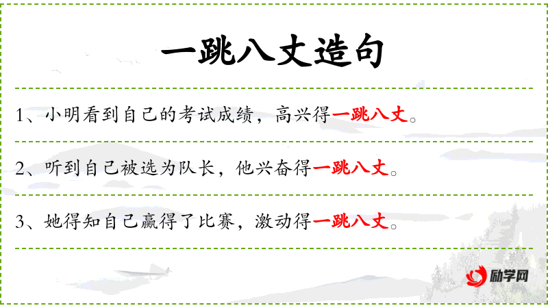 1. 【一跳八丈】 - 形容精力充沛; 现多用以形容脾气很大﹐容易发怒。