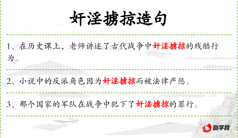 - 奸淫掳掠:指战争中的性侵犯、抢劫和掠夺行为。