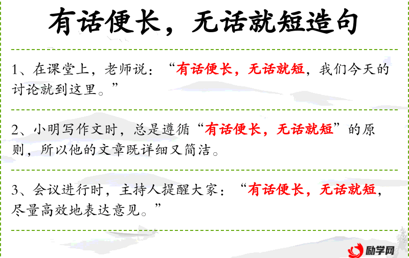 老师批改作业时,对学生说:“你的答案有话便长,无话就短,这样很好,既详细又不啰嗦。”