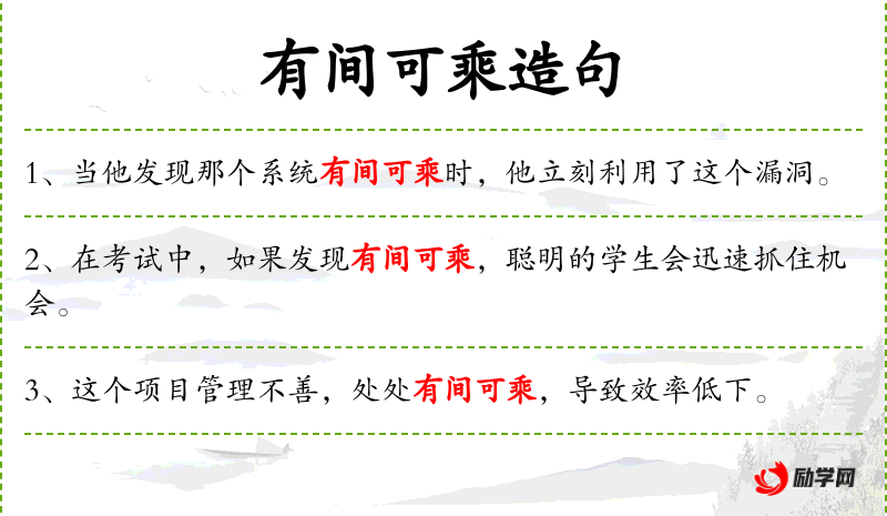 1. 【有间可乘】 - 间:空隙。有空子可钻。