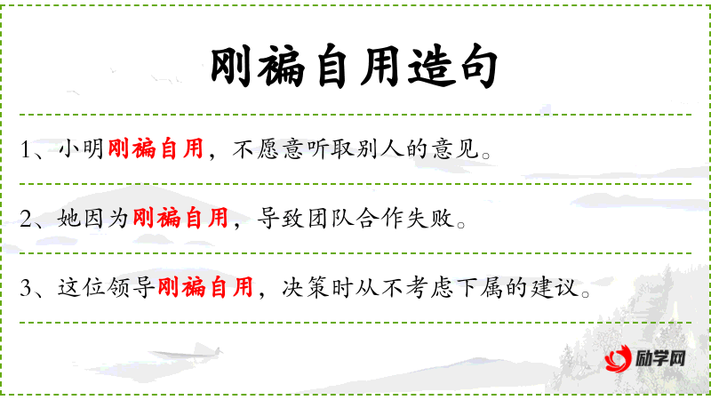 - 谓语:“刚褊自用”、“总是认为自己是对的”、“不听别人的劝告”