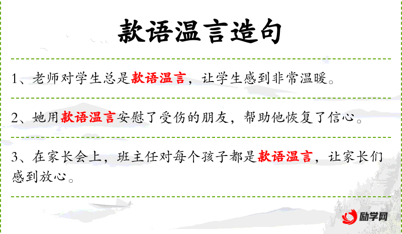 5. 【款语温言】 - 指诚恳而温和的言辞。
