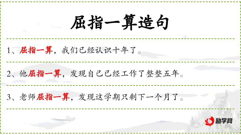 - 谓语:屈指一算,发现