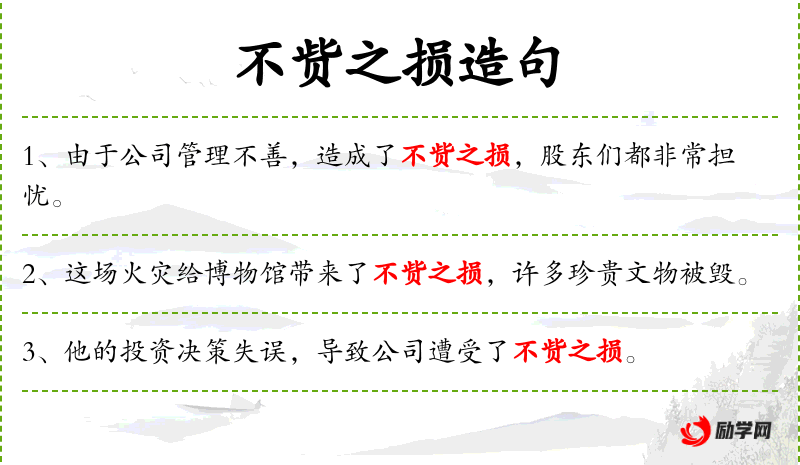 - 不赀之损:这个成语强调了损失的巨大和难以弥补的特性,常用于描述严重的经济或声誉损失。