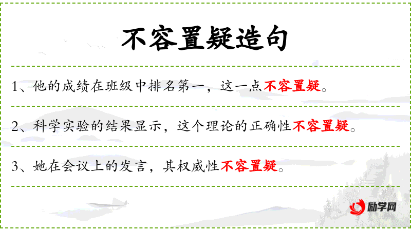 - 不容置疑:表示毫无疑问,非常确定。