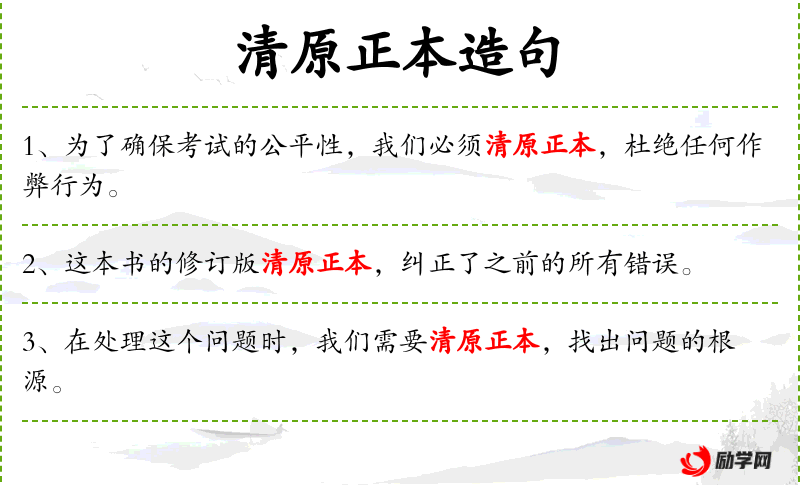 4. 【清原正本】 清理水的源头,扶正树的根。比喻从根本解决问题。