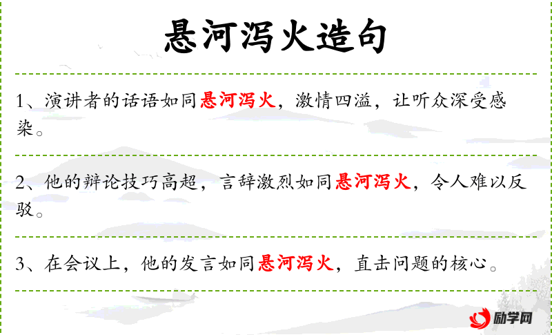 句子:“她的演讲如同悬河泻火,充满了激情和说服力。”