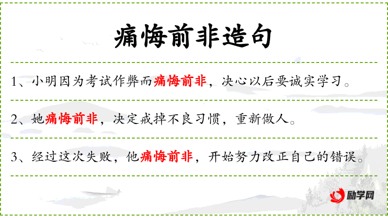 1. 【痛悔前非】 彻底悔恨以前所犯的错误。