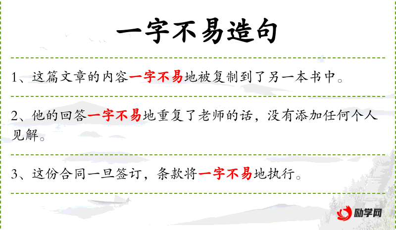 - 一字不易:表示完全相同,没有改动。