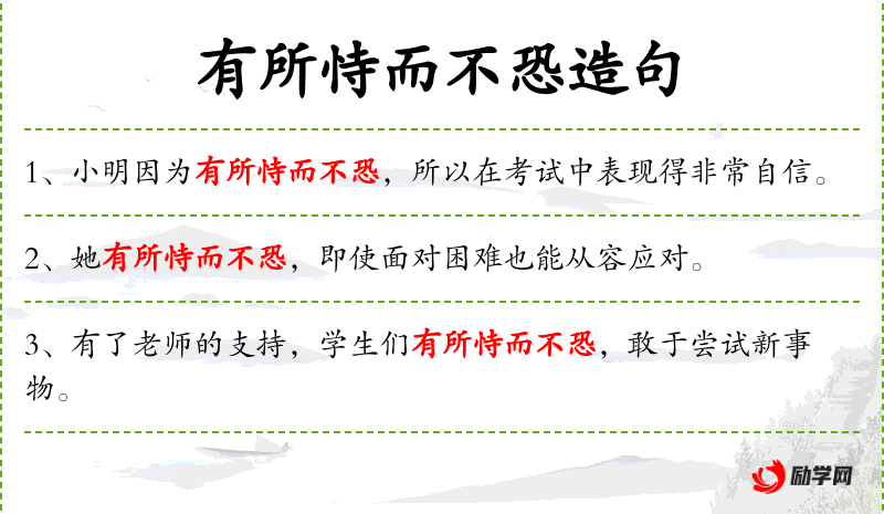 2. 【有所恃而不恐】 - 恃:倚仗;恐:害怕。有所倚仗而不害怕。