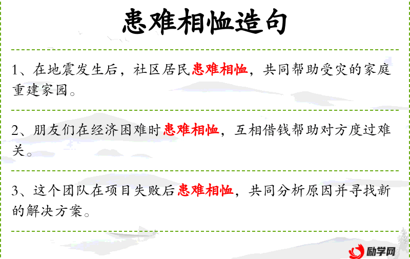 - 患难相恤:在困难时期互相支持和帮助。