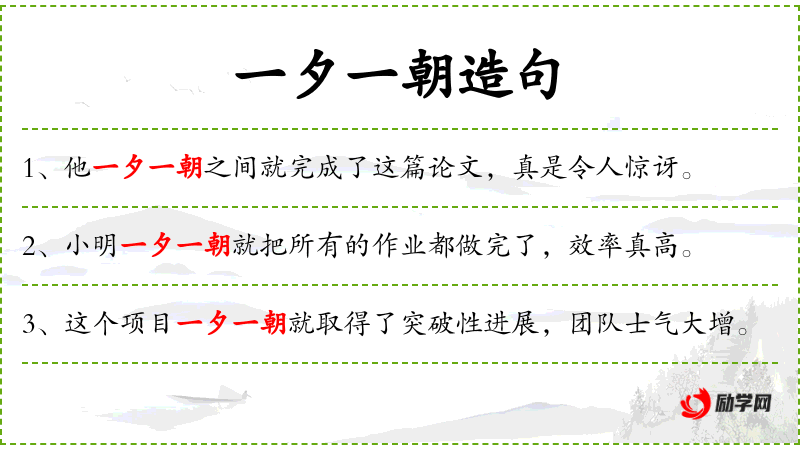- 成语“一夕一朝”源自**古代文学,强调短时间内发生的变化。