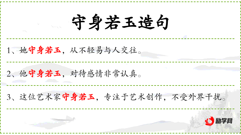- 文化意义:“守身若玉”是**传统文化中的成语,强调保持纯洁和高尚的品质。
