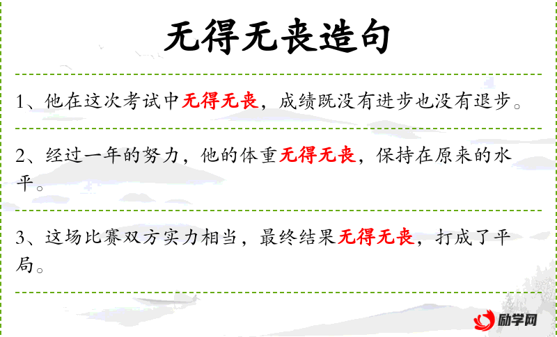 - 无得无丧:表示既没有获得也没有失去,即结果是中性的。