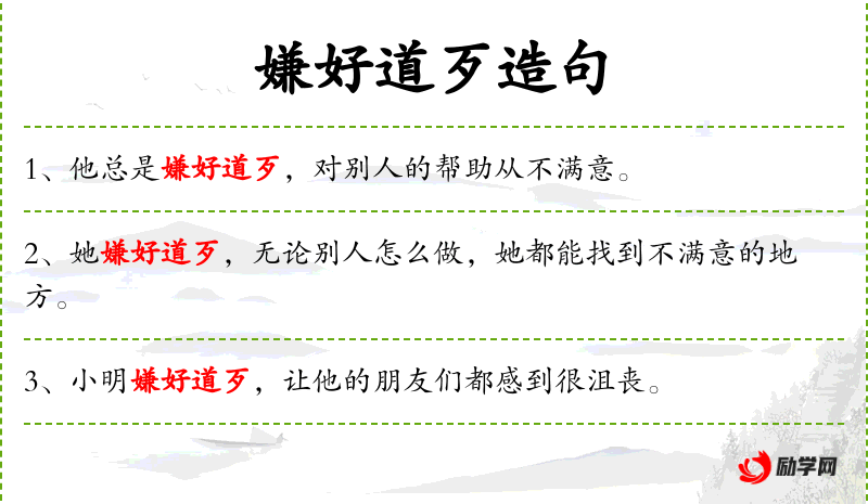 - 嫌好道歹:指对事物过于挑剔,无论好坏都挑剔。