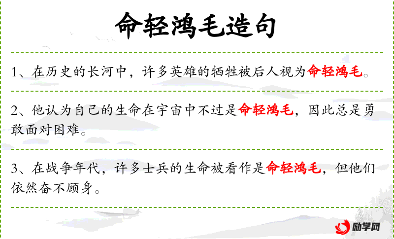 句子中“命轻鸿毛”是一个成语,源自**古代文学,比喻生命的价值轻如鸿毛。这反映了中华文化中对家庭和牺牲的重视。