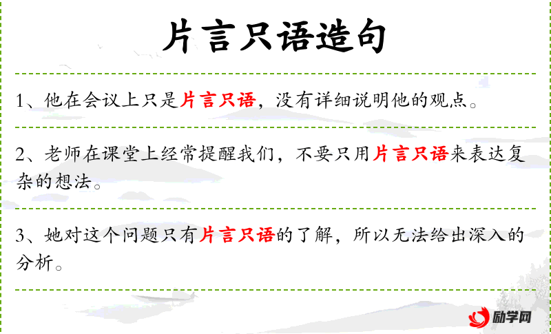 5. 【片言只语】 - 零零碎碎的话语。形容语言文字数量极少。
