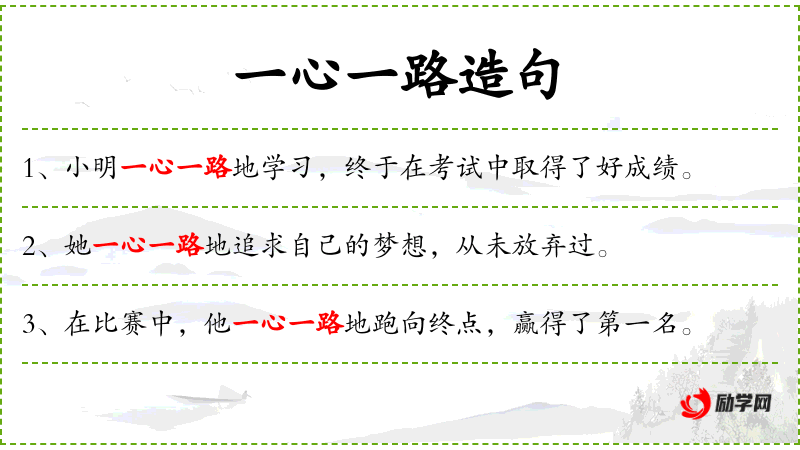 1. 【一心一路】 - 犹一心一意。只有一个心眼儿,没有别的考虑。