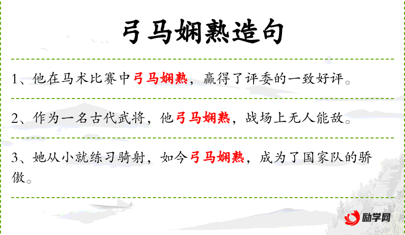 - 弓马娴熟技艺:指骑马和射箭的技能非常熟练。