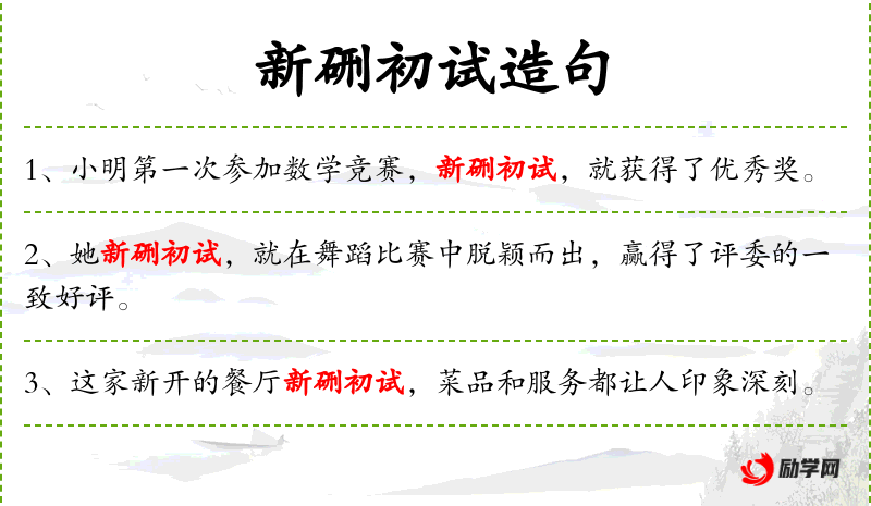 - 新硎初试:这个成语来源于古代的磨刀石,比喻初次尝试或展示。在现代语境中,常用来形容新事物的初次亮相。