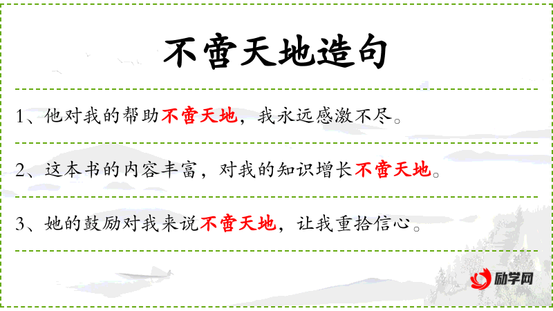 1. 【不啻天地】 - 不啻:无异于。无异于天地之别。比喻差别极大。