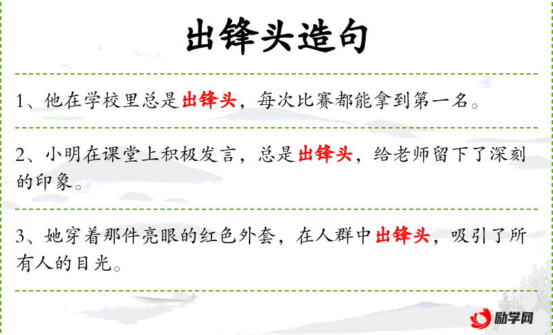 - 出锋头:成语,形容在众人中显得突出、引人注目。
