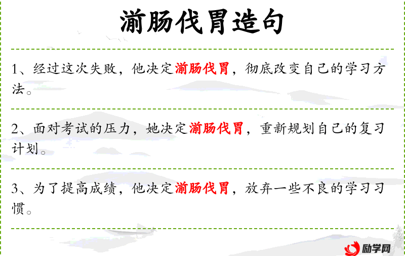 9. 【湔肠伐胃】 湔:洗;伐:敲打。形容以聪慧代替原来的愚钝。