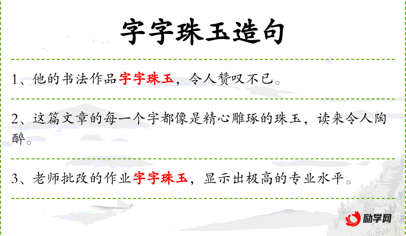 - 字字珠玉:形容书法或文字非常精美,每个字都像珠玉一样珍贵。