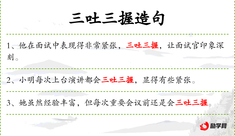 - 三吐三握:可能是一种紧张的表现,具体动作不详,但表示重复的动作。