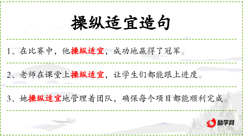 - 操纵适宜:这个词组意味着在演讲中恰当地控制和运用语言、情感等,以达到最佳效果。
