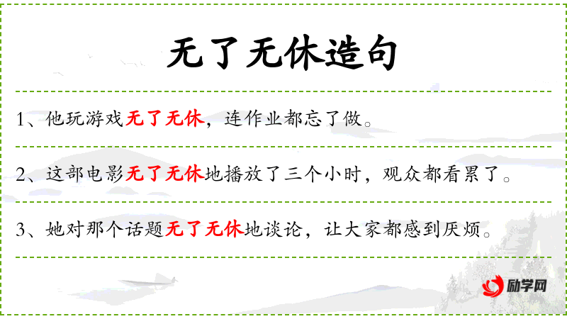 - 无了无休地:副词短语,表示没有停止或间断地进行。