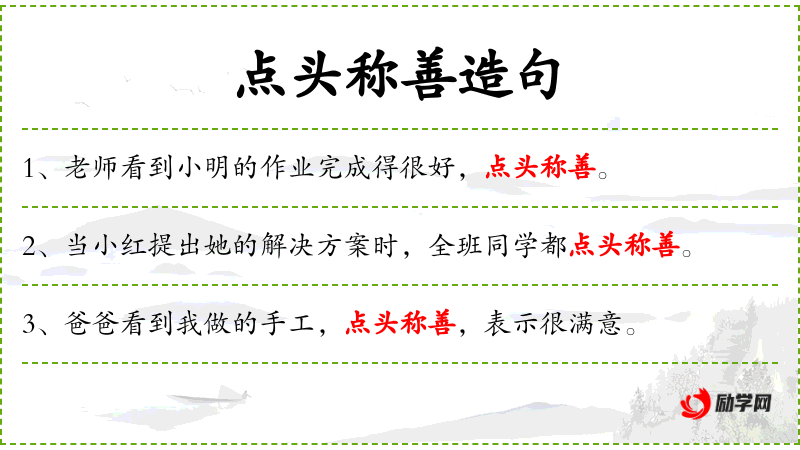 4. 【点头称善】 - 道:说;善:好。表示赞同。