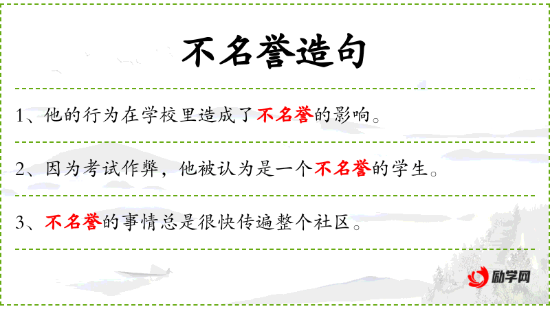 1. 【不名誉】 - 对声名有损害,不体面。