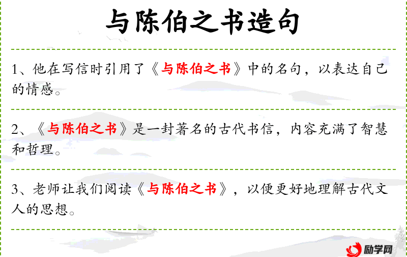 骈文篇名。南朝梁丘迟作。陈伯之是投降北魏的梁将,梁军北伐时,作者替梁军主帅写信招降陈伯之。信中陈说归降与否的利害关系,宣扬梁朝的宽宏,最后用暮春三月,江南草长,杂花生树,群莺乱飞”的故国景物打动对方,尤为后人传诵。陈接信后,即率部复归梁朝。