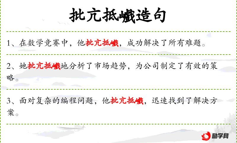 - 批亢抵巇:这是一个成语,意思是形容处理问题非常巧妙、得当。