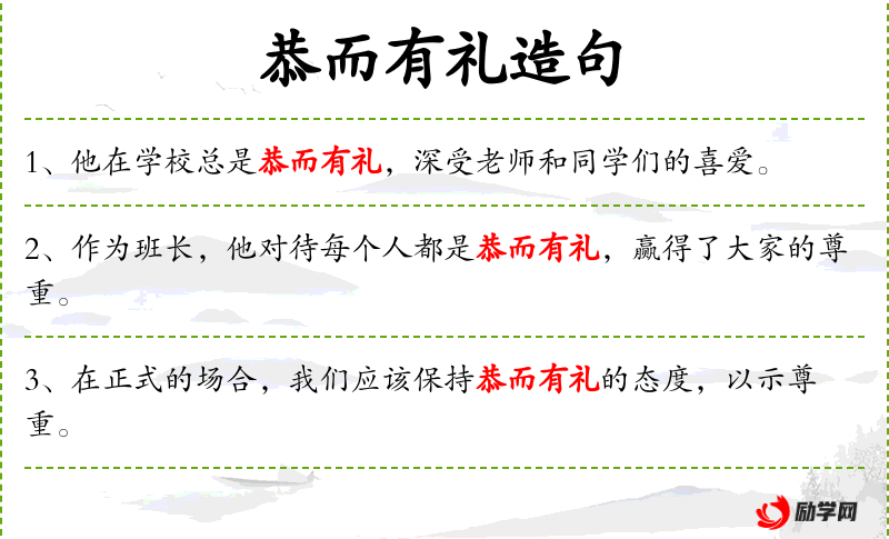 - 礼貌用语:恭而有礼是一种礼貌的表现,体现了对他人的尊重。