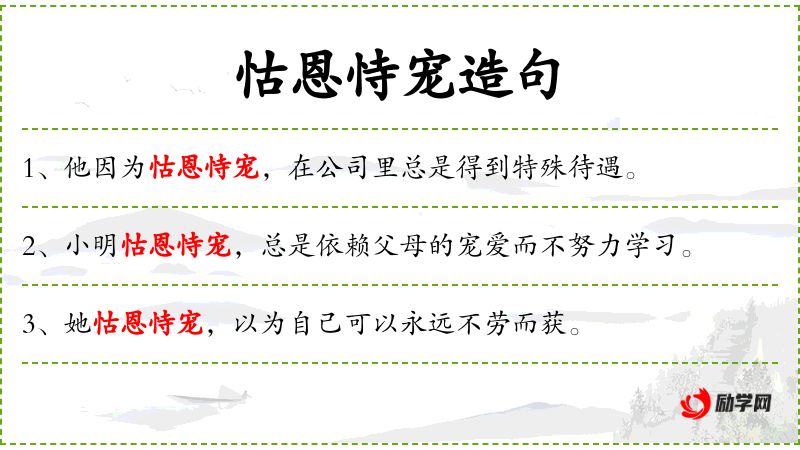 - 怙恩恃宠:依赖他人的恩惠和宠爱,通常带有贬义。