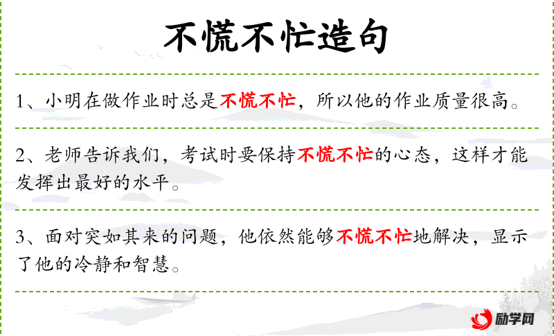 1. 【不慌不忙】 不慌张,不忙乱。形容态度镇定,或办事稳重、踏实。