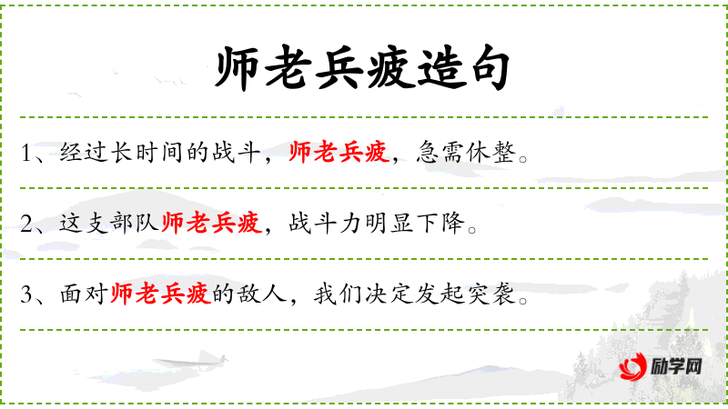 - 师老兵疲:形容军队因为长期作战而疲惫不堪。