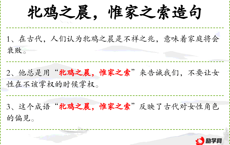 6. 【牝鸡】 - 母鸡。比喻专权的妇人。