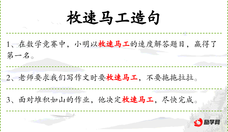 2. 【枚速马工】 - 工:工巧;速:速度快。原指枚皋文章写得多,司马相如文章写得工。后用于称赞各有长处。