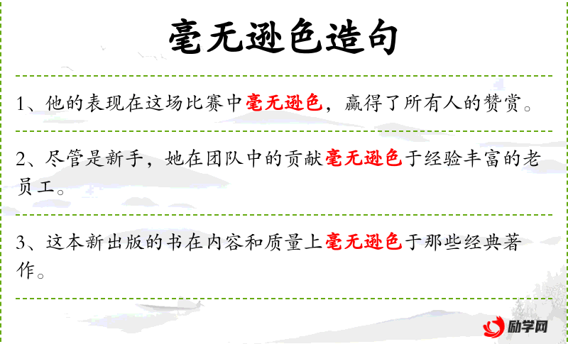 1. 【毫无逊色】 - 表示比得上,丝毫不差。