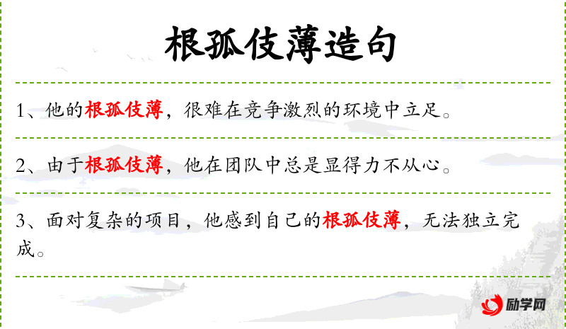 1. 【根孤伎薄】 - 势力孤单,才智浅薄。