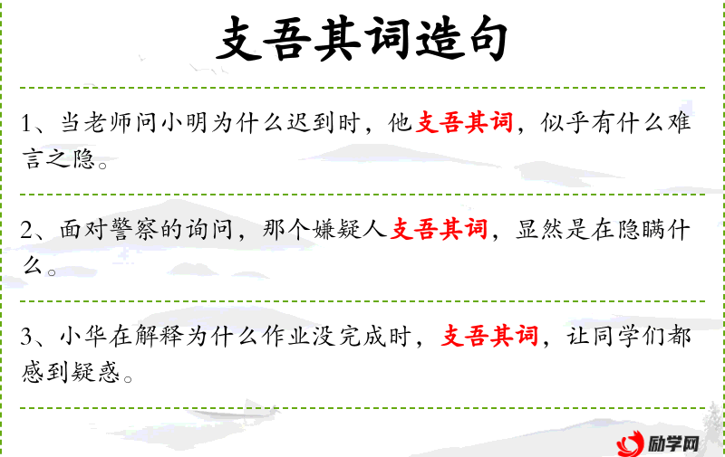- 支吾其词:含糊其辞、闪烁其词