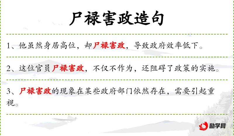 - 尸禄害政:指占据高位却不作为,只知享受俸禄而损害政务。