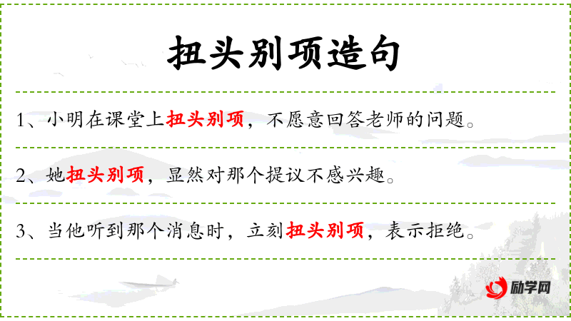 - 扭头别项:turn one's head away,表示拒绝看或听。