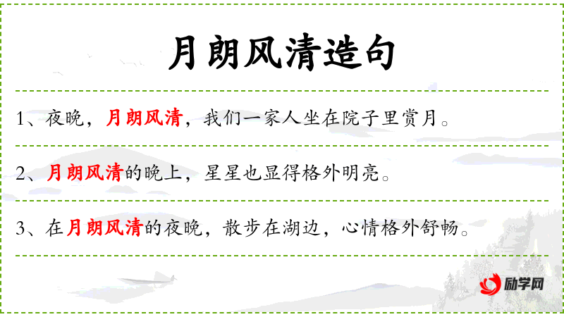 2. 【月朗风清】 - 月光明朗,微风清爽。形容宁静美好的月夜。